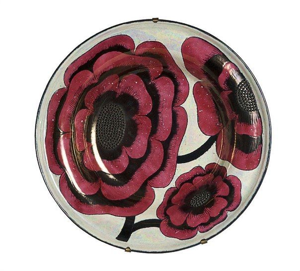 A vibrant splash of blooming red poppies captured in ceramic form.